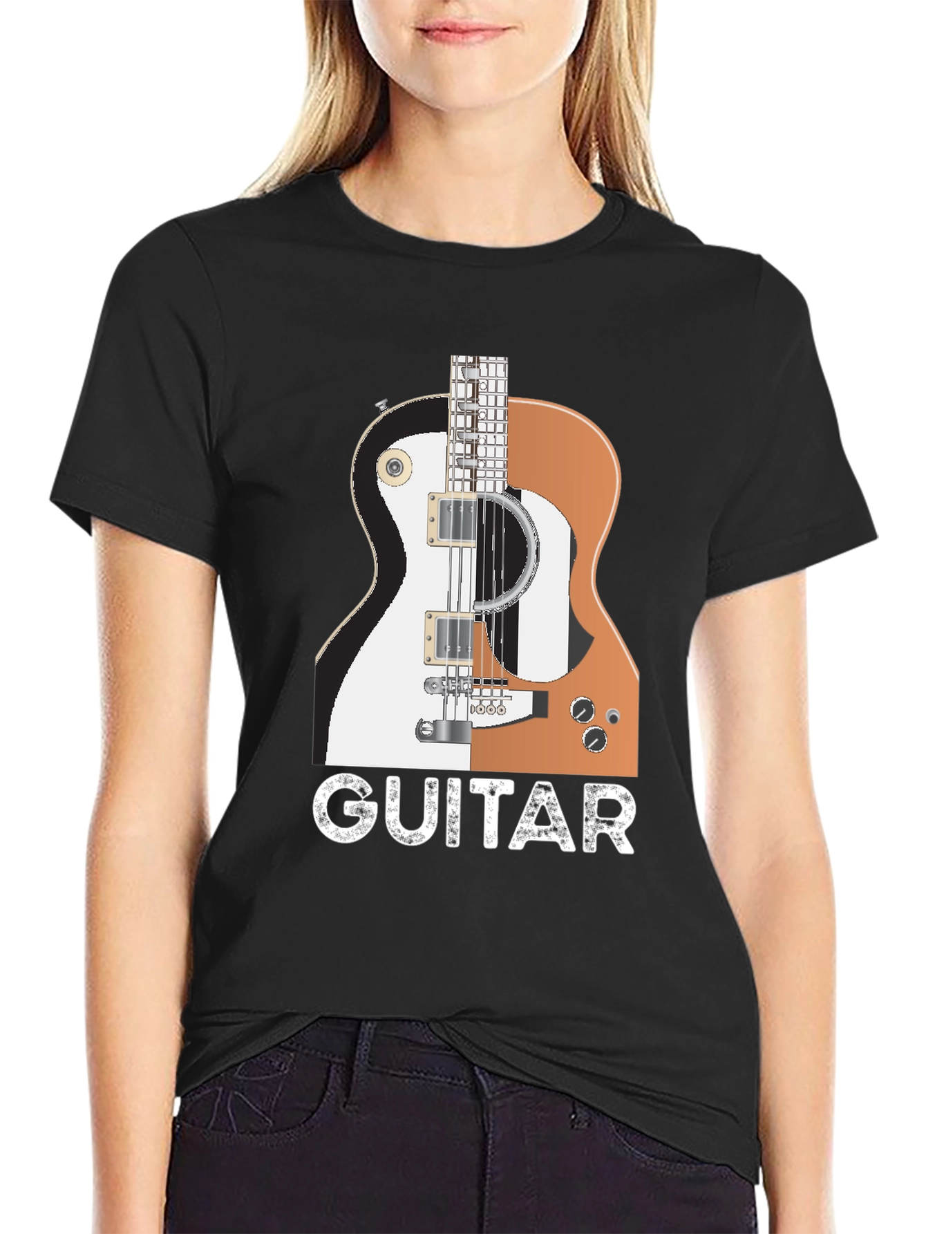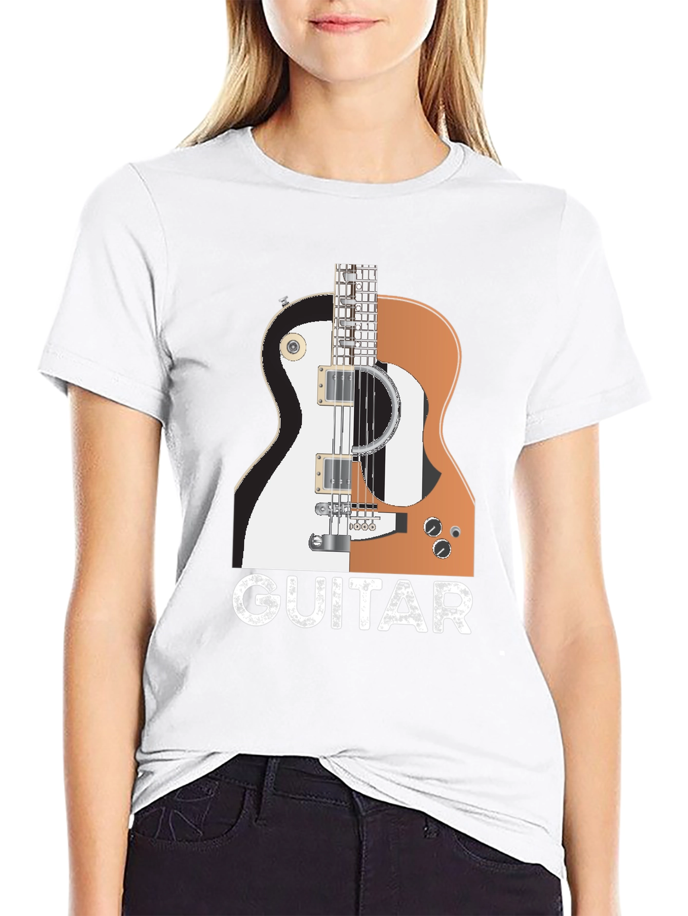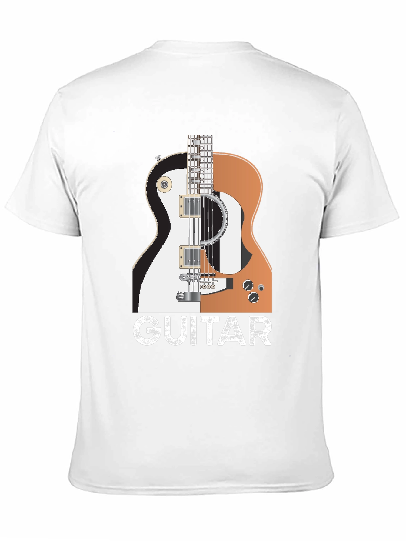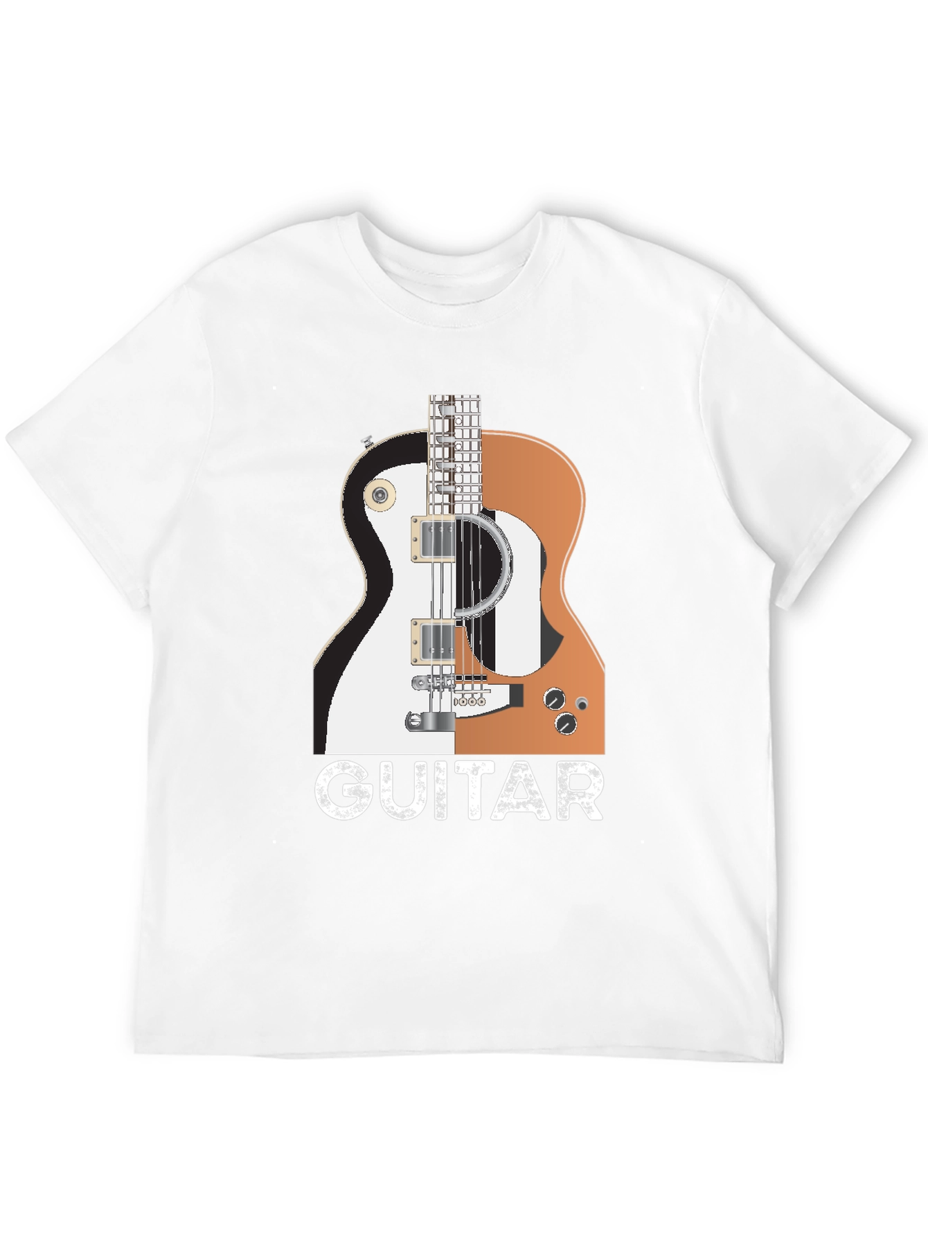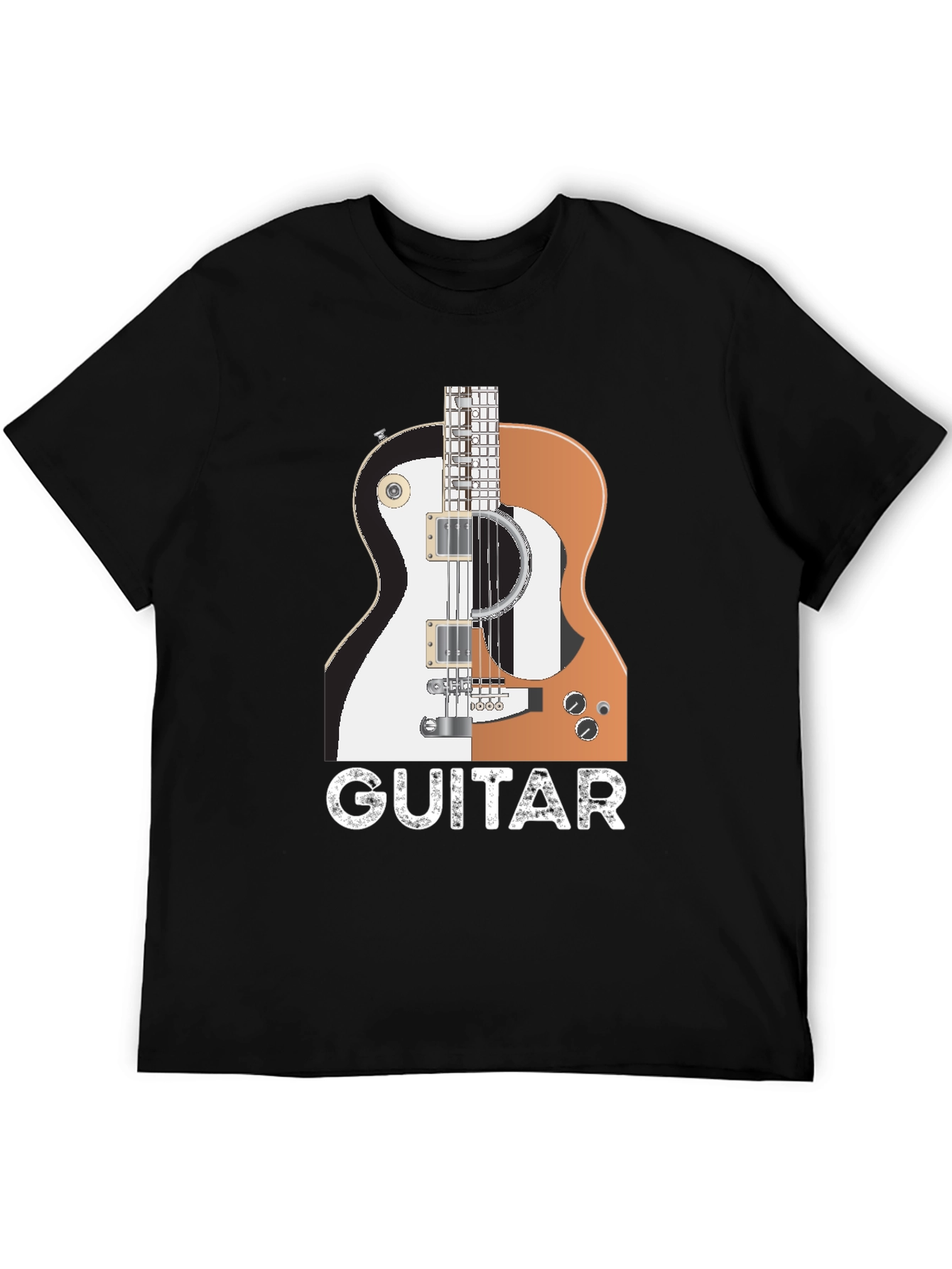 Rock your style with this unique guitar graphic t-shirt! Featuring a bold, half-and-half guitar design, this tee is perfect for music lovers and guitar enthusiasts. The design includes the word "GUITAR" in a stylish font. The shirt appears to be made of a comfortable, breathable fabric, ideal for everyday wear. Show off your passion for music with this eye-catching and stylish tee. A great conversation starter and a must-have for any musician's wardrobe. Perfect for concerts, band practice, or just hanging out.